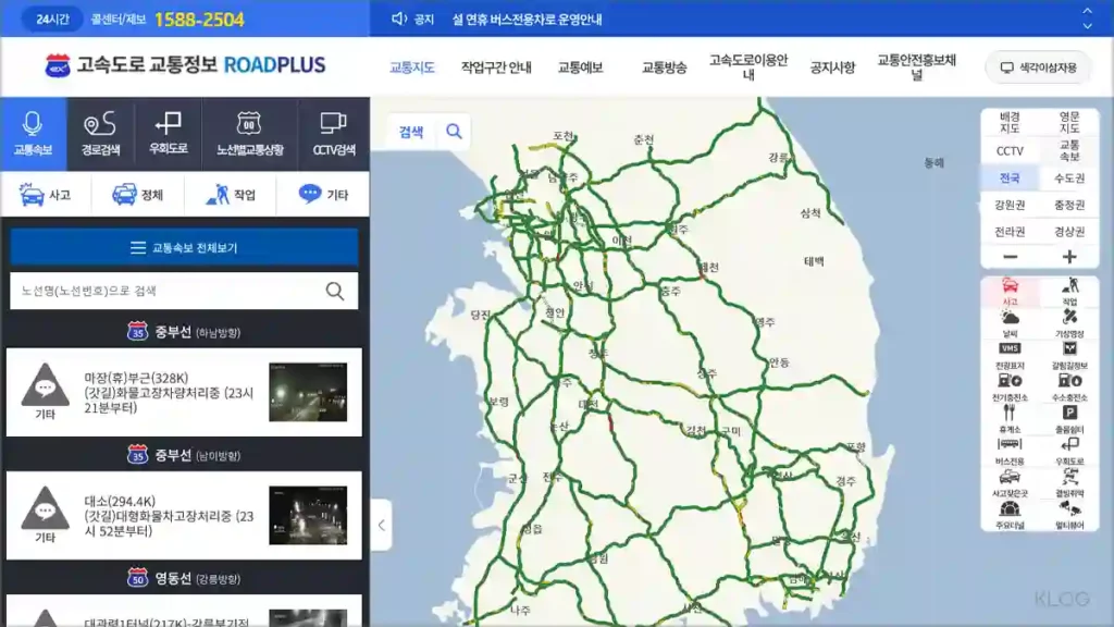 ※ 고속도로 교통정보 ROADPLUS 로드플러스의 콜센터는 24시간 운영됩니다.
